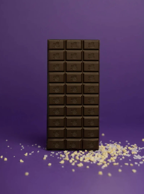 Laat je bij iedere hap verrassen door de single-origin cacao uit Uganda, verrijkt met knapperige amandelen en perfect afgerond met een vleugje Siciliaans zeezout.
