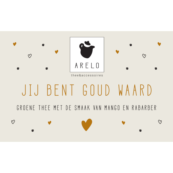 Artikelnummer: AR - TGR08 / 10 Zie totale AssortimentJe bent Goud waard! Dat is tenslotte iedereen toch? Met deze heerlijke groene thee met aroma's van mango en rabarber kan dat op een extra mooie en lekkere manier worden overgebracht.