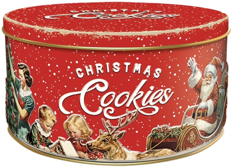 Artikelnummer: P - 906911 / 6 Zie totale AssortimentRood Rond Vintage Kerstblik met Kerst Koekjes