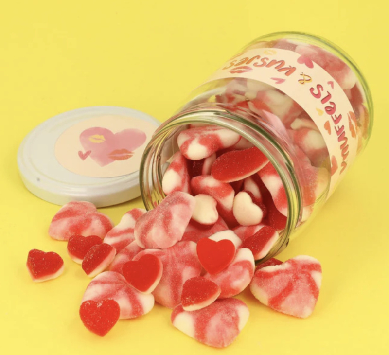 Artikelnummer: VL - VL1096 / 4 Zie totale AssortimentEen grote snoeppot gevuld met onze love snoepmix met verschillende roze aardbei snoepjes en hartjes snoep.