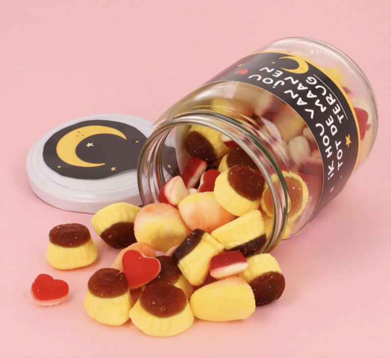 Artikelnummer: VL - VL1095 / 4 Zie totale AssortimentEen grote snoeppot gevuld met onze karamel & hartjes mix: karamel snoepjes, crème brûlée taartjes én kleine hartjes . Met de opdruk 'Ik hou van jou tot de maan en terug'!