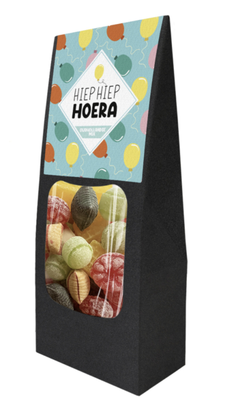 Artikelnummer: LV - 183803 / 12 Zie totale AssortimentSnoep Doosje Hiep Hiep Hoera gevuld met oud Hollandse Mix.