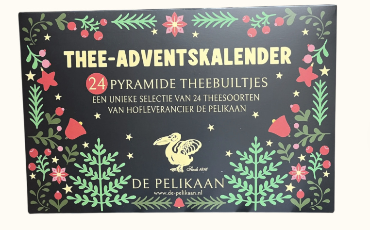 Artikelnummer: PEL - 20281R / 1 Zie totale AssortimentTel met ons af naar een fijne Kerst met deze Thee-Adventskalender: een unieke selectie van 24 theesoorten van De Pelikaan, hoe lekker is dat?