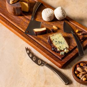 Artikelnummer: BD - AW1669 / 6 Zie totale AssortimentDeze serveerplank uit de Pure Acacia Wood collectie is zorgvuldig geselecteerd op de donkerste en meest karaktervolle delen van het hout. Het hout is afkomstig uit India en staat bekend om zijn levendige tekening, natuurlijke kleurvariaties en robuuste uitstraling. De plank heeft een handig handvat met juten ophangkoord. Eén zijde is voorzien van een sapgoot, ideaal voor brood of fruit, terwijl de andere zijde glad is en gebruikt kan worden als gewone serveer- of snijplank.