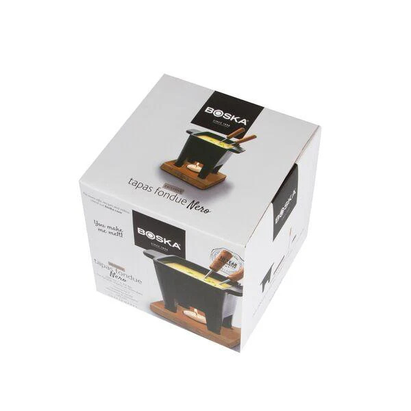 Artikelnummer: BOS - 853530 / 6 Zie totale AssortimentMaak kennis met de Tapas Fondue Nero, jouw nieuwe beste vriend voor intieme en gezellige momenten. Deze compacte fondueset is ideaal voor het serveren van kleinere porties kaasfondue, maar je kunt er ook saus in warm houden.