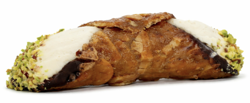 De buitenkant van deze heerlijke Siciliaanse koekjes bestaat uit krokant amandelschaafsel, die is gedipt in chocolade en daarna gevuld is met creme.