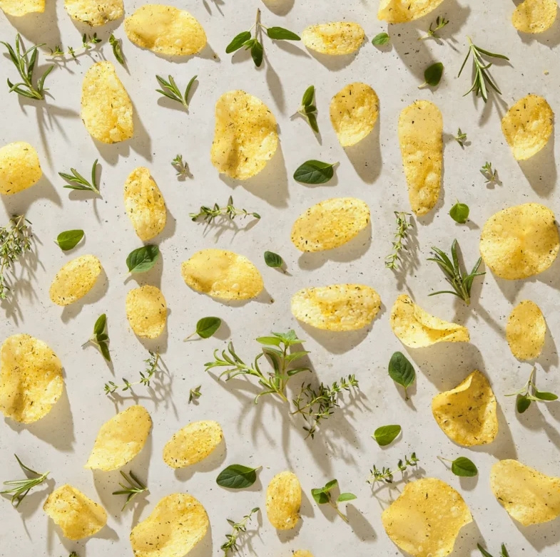 Hoogwaardige aardappelen, samen met een verscheidenheid aan natuurlijke aromatische kruiden zoals rozemarijn, tijm en oregano, allemaal kenmerkend voor het mediterrane dieet, vormen de essentiële grondstof voor deze variant op chips met precies het juiste snufje zout.