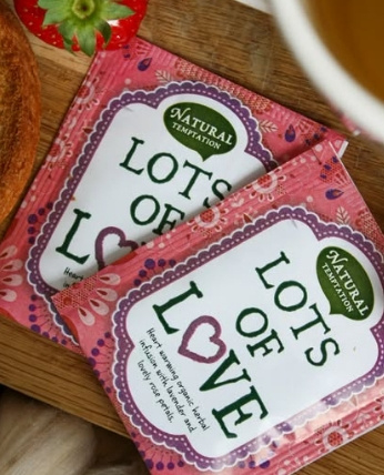 Artikelnummer: V - 2101 / 5 Zie totale AssortimentLots of Love is een hartverwarmende biologische kruidenthee met lavendel en lieflijke rozenblaadjes. Met deze bijzondere kruidenthee geef je een kado vol liefde!
