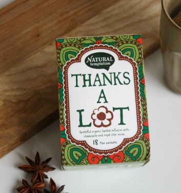 Artikelnummer: V - 2091 / 5 Zie totale AssortimentDankbare biologische kruidenthee met kamille en Koninklijke steranijs. Een bijzondere kruidenthee om 'thanks a lot' mee te zeggen.