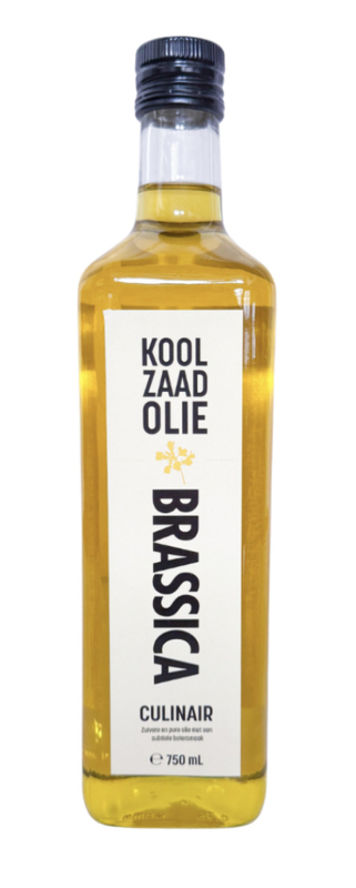 Brassica Koolzaadolie Culinair 750 ml.Olie uit koolzaad is een lekkere olie om in te (roer)bakken, te braden en om te gebruiken in salades. Een puur en eerlijk product met superieure smaak- en gezondheidseigenschappen. Ambachtelijk vervaardigd uit in Nederland…